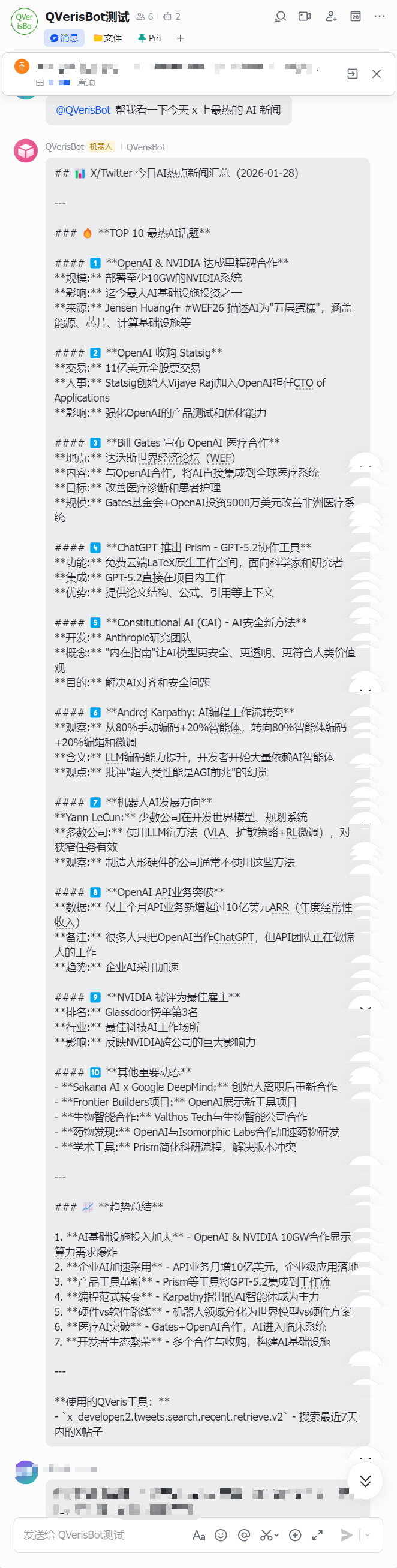 另外,除了金融方面,接入QVeris 后也可以帮你完成X、加密货币等数据的整合,多种领域功能等你来发掘体验~