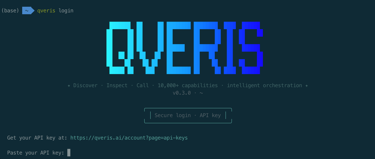 > ⚡ **零配置即用**curl 一键安装,`qveris login` 交互式认证。30 秒从零到可用。