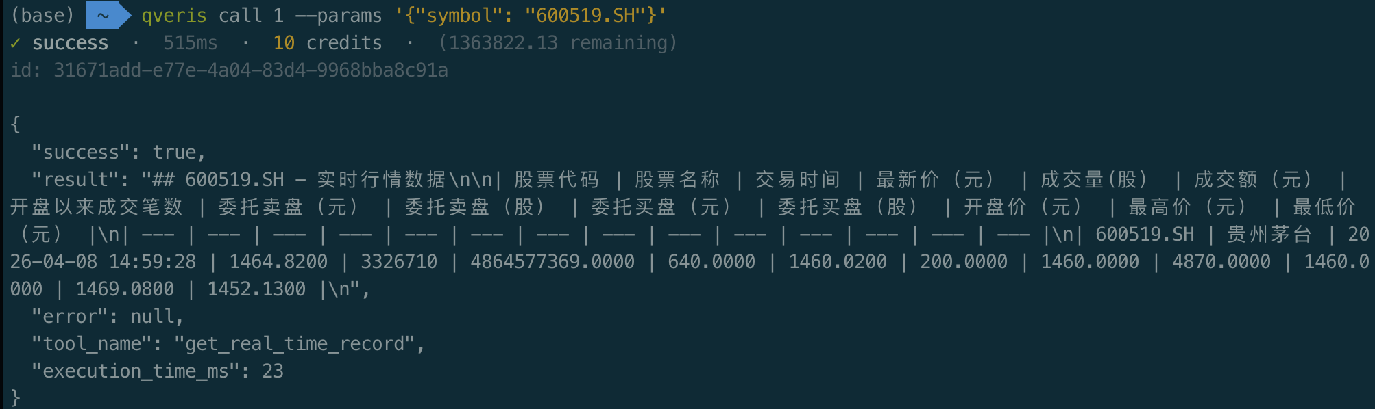 qveris call <id> | 调用工具并获取结果 | 1-100 credits |