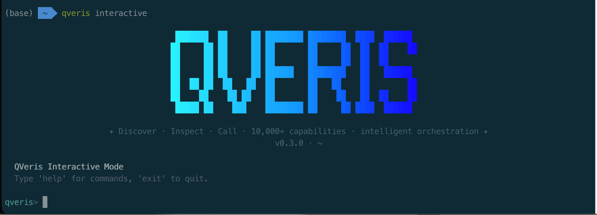 如果你想边探索边试用,qveris interactive 启动交互式环境: