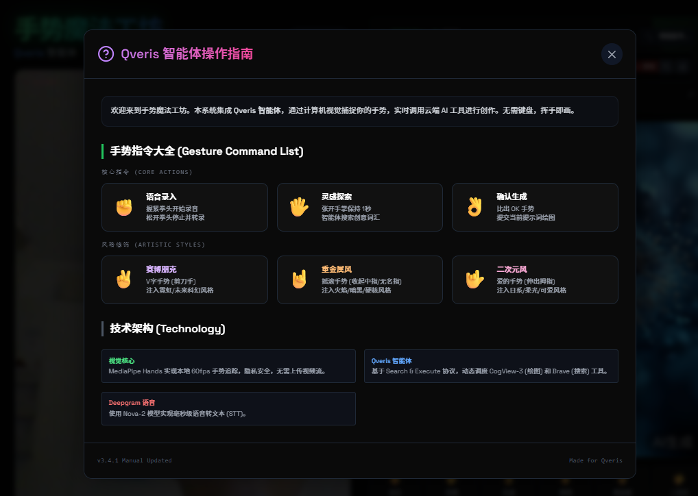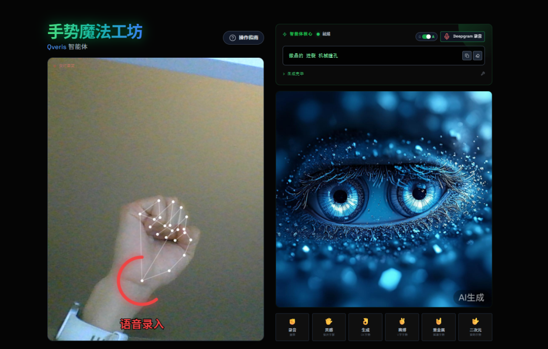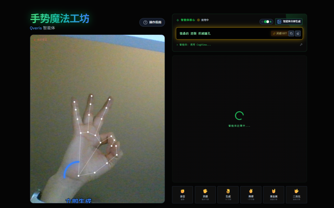 这是一个多模态创作型 Agent 项目,目标非常直接:不靠键盘和鼠标,只用手势和语音完成 AI 创作。