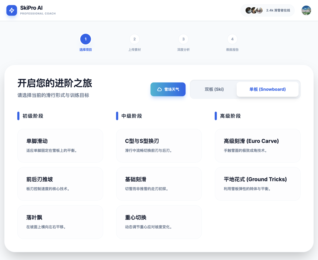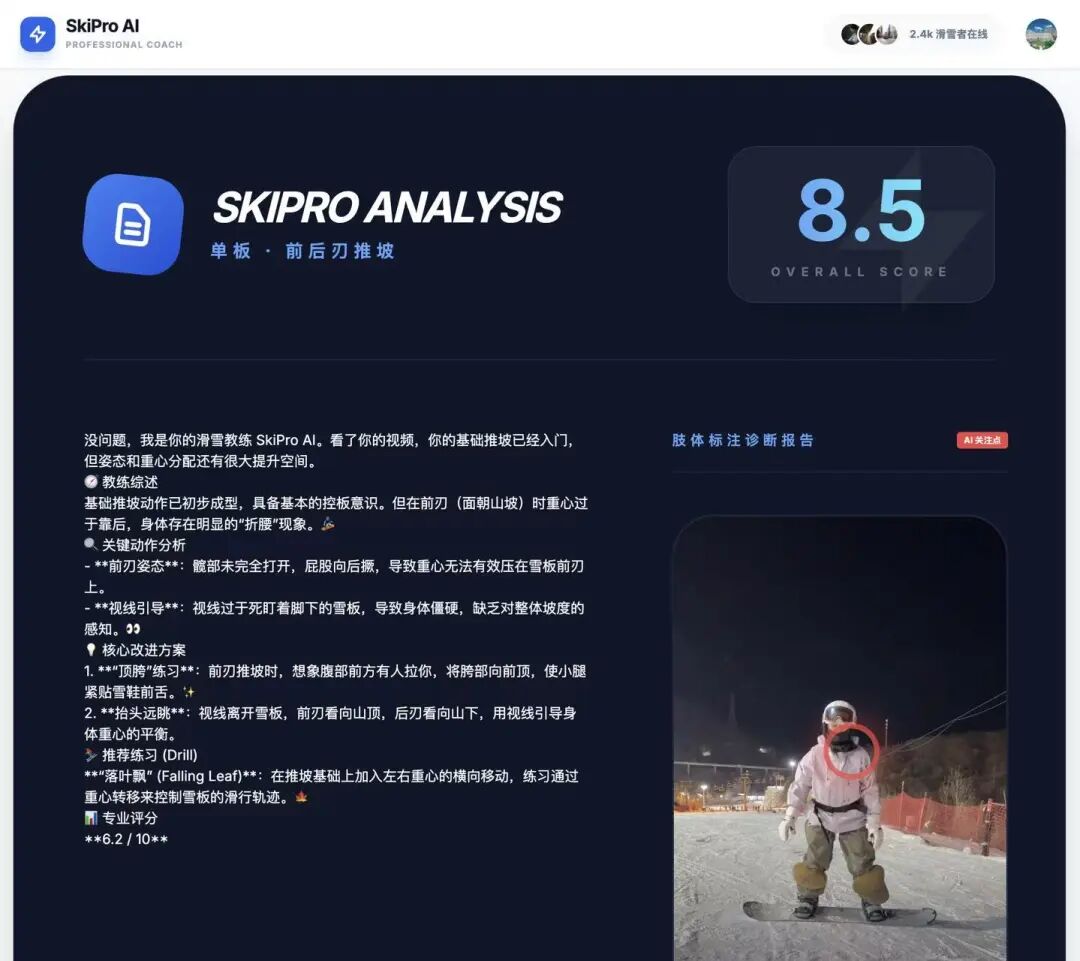 - 🏂 单板 / 双板动作识别、多阶段技术诊断、个性化修正报告